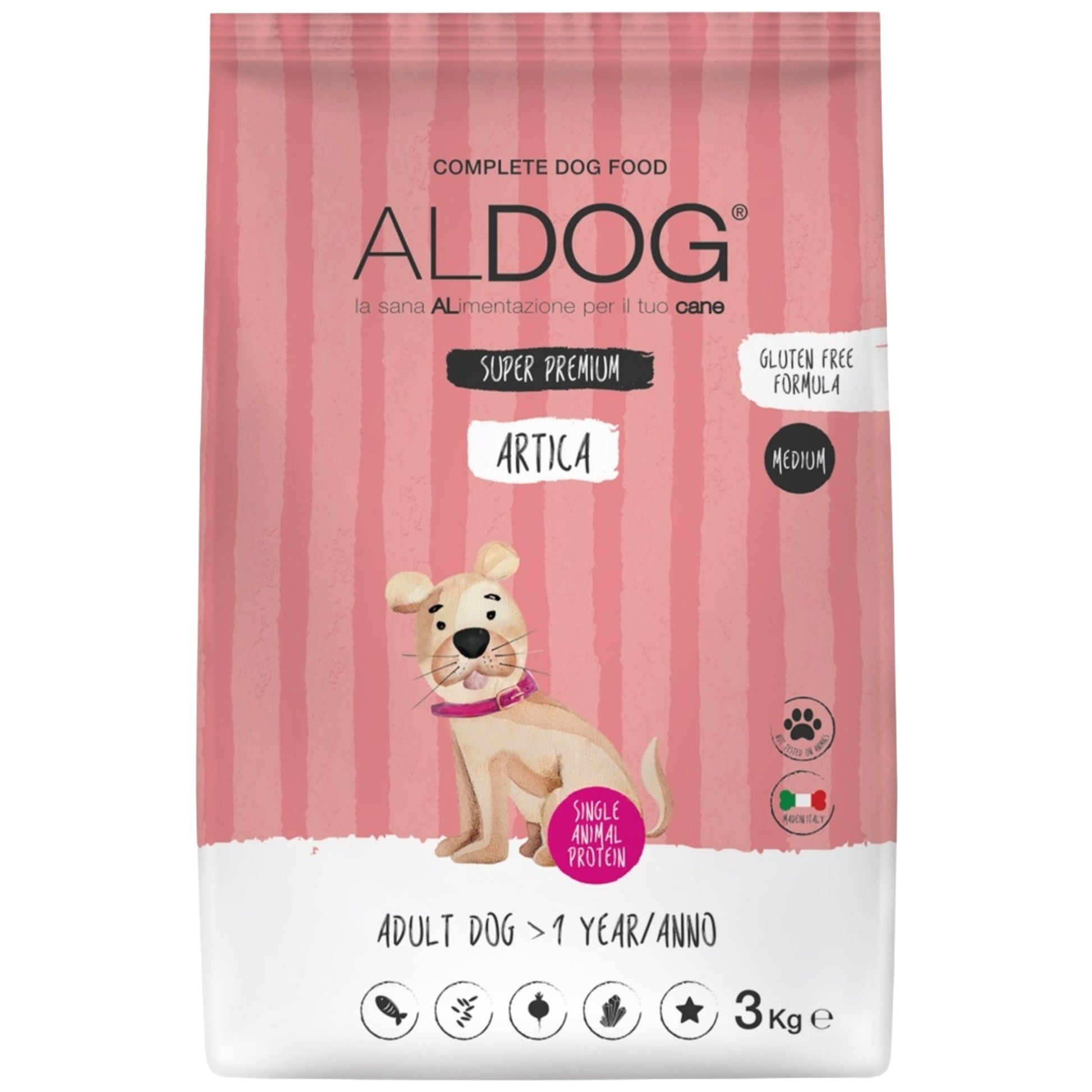 ALDOG Artica kombiniert Lachs als einzige tierische Proteinquelle mit Reis als leicht verdauliche Kohlenhydratbasis.