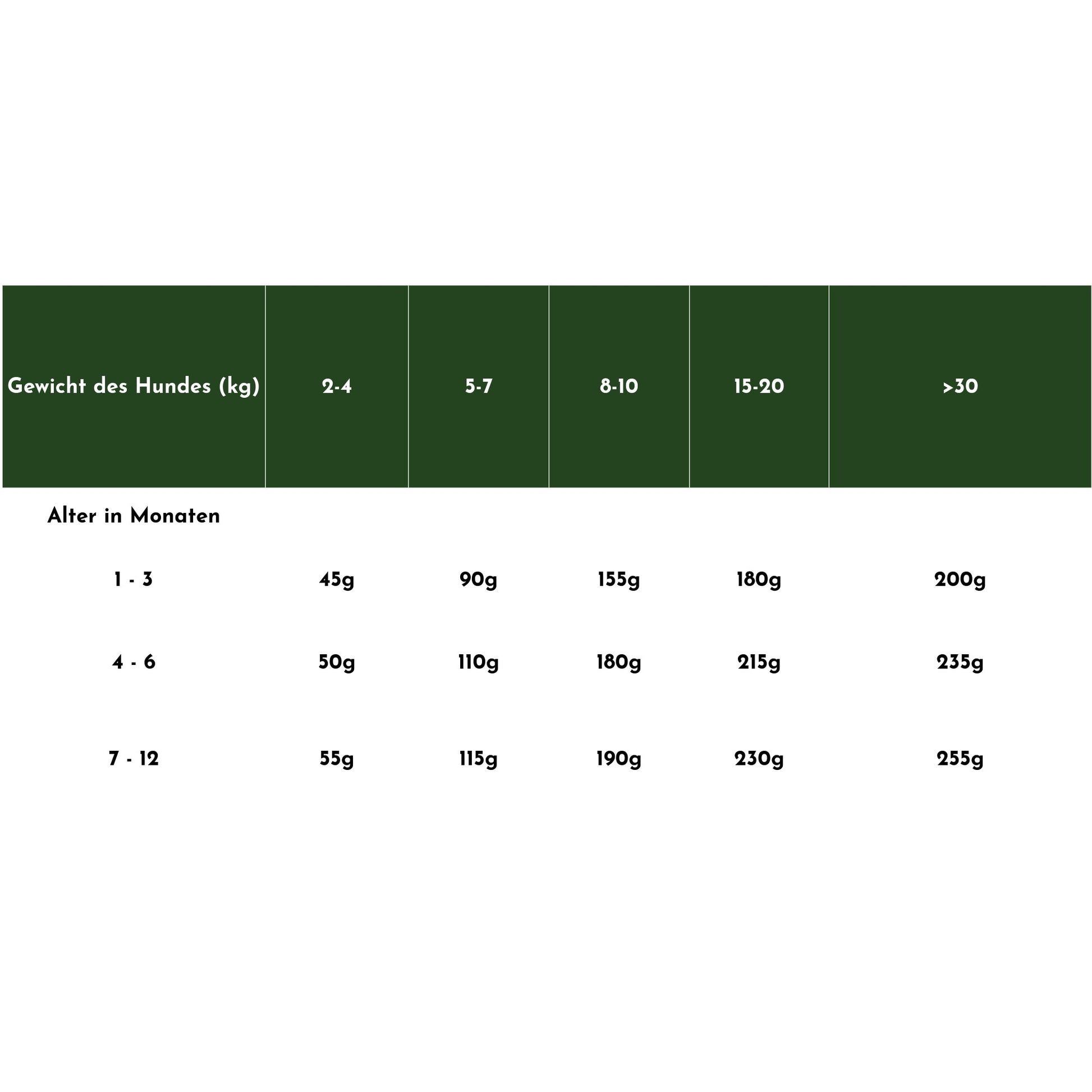 Welpen befinden sich in einer intensiven Wachstumsphase. Verdauung, Immunsystem und Bewegungsapparat entwickeln sich und reagieren häufig sensibel auf Futterwechsel.