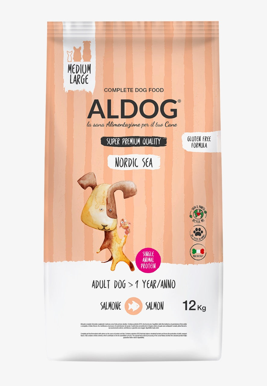 Adult Nordic Sea ist ein Monoprotein-Trockenfutter für erwachsene Hunde mit Lachs als einziger tierischer Proteinquelle. Die Rezeptur ist glutenfrei und auf eine ausgewogene tägliche Ernährung ausgelegt.